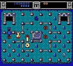 In the arcade Trog uses Claymation graphics to stand out. It made for a striking look that was unique for the time and also helped distinguish it from Namco’s series. Sadly the NES port loses that and a lot of the charm of the game to boot. By no means is this an ugly game; by NES standards it is decent. It simply looks generic and makes little use of the system’s color palette. To its credit many of the funny animations remain but like so many later arcade games it suffers heavily in the transition to the little grey box.